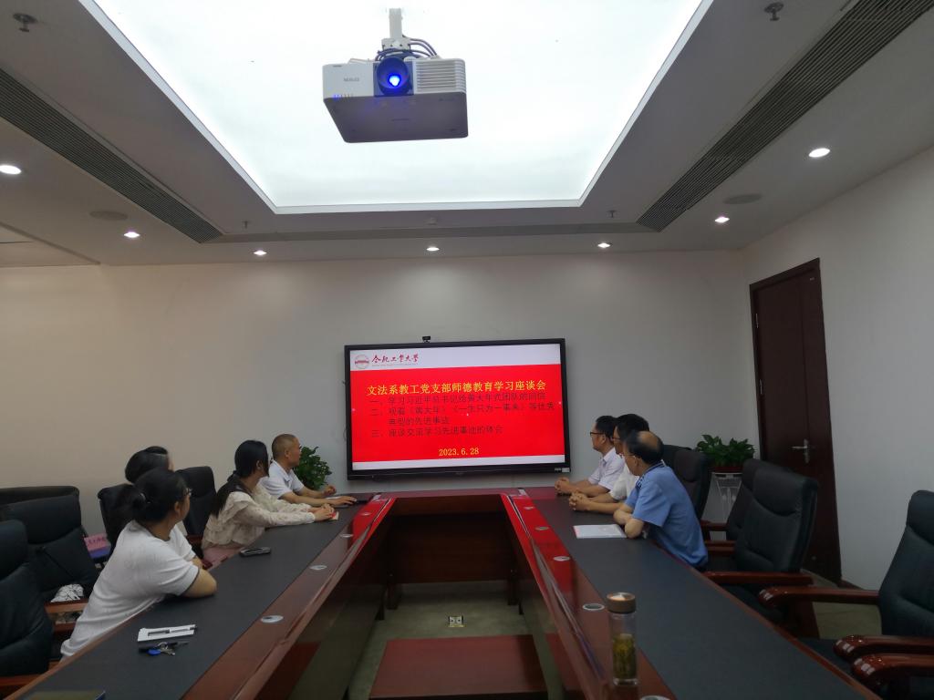 建党102周年前夕,文法系教工党支部结合当前重点工作,通过指导学生开展专业实践、理论学习、主题党课、召开师德教育座谈会、“党员先锋岗”授牌、重温入党誓词等方式,喜迎党的生日。