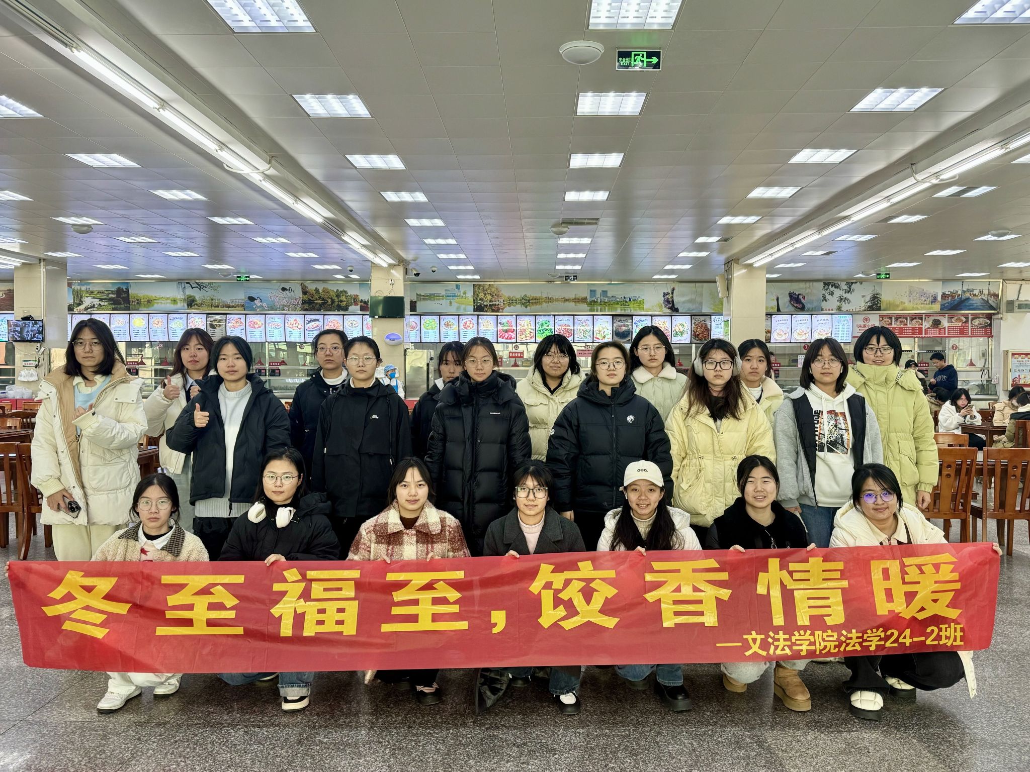 为传承中华民族优秀传统文化,感受冬至节气氛围,缓解期末复习的压力,增强班级的凝聚力,12月21日,学院本科生法学24-2班在屯溪路校区馨园食堂开展“冬至福至,饺香情暖”冬至包饺子活动。法学24-2班全体同学参加了此次活动。